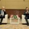 Prabowo tampak bersalaman erat dengan AHY. Keduanya terlihat berbincang-bincang.