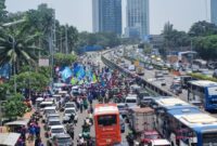 Buruh Demo di Depan DPR, Lalin Jl Gatot Subroto Arah Slipi Dialihkan