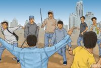 Rekaman video memperlihatkan seorang pria pedagang kaki lima (PKL) di dekat jembatan BKT, Jakarta Timur, dianiaya hingga hidung berdarah. Korban disebut-sebut dianiaya preman yang mengaku sebagai ‘penguasa wilayah’ karena menolak memberikan jatah Rp 200 ribu.