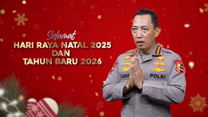 “Saya Kepala Kepolisian Negara Republik Indonesia mengucapkan selamat hari raya Natal 2025 dan Tahun Baru 2026. Semoga kasih Natal membawa pemulihan, kekuatan dan semangat baru bagi perjalanan bangsa kita menuju Indonesia Emas 2025,” kata Jenderal Sigit dalam video unggahannya di Instagram, Rabu (24/12/2025).