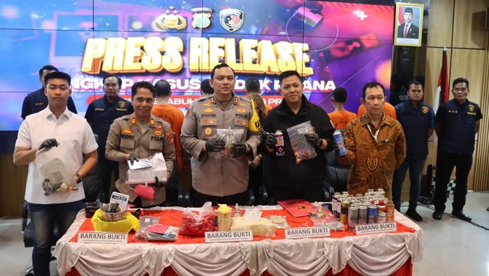 Barang bukti yang berhasil diamankan yakni 11 tabung gas isi 3 kg, 2 tabung gas kosong 3 kg, 557 kaleng portabel isi, 442 tutup kaleng portabel, 7 regulator, 2 timbangan digital, dan 4 unit handphone.